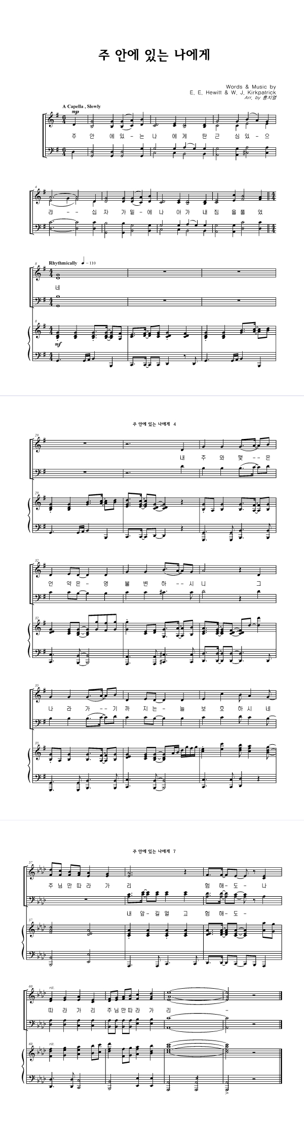 | 주 안에 있는 나에게 (찬송가 370장) | 성가 4부 + 피아노 반주 |