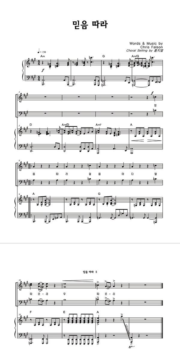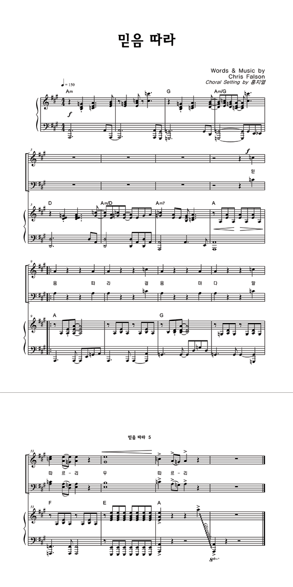 | 믿음따라 | 성가 3부 + 피아노 반주 |