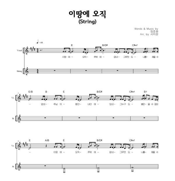 '이 땅에 오직' 의 다른 악보형식