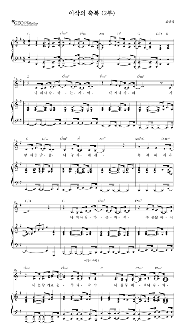 | 이삭의 축복 | 성가 2부 + 피아노 반주 |