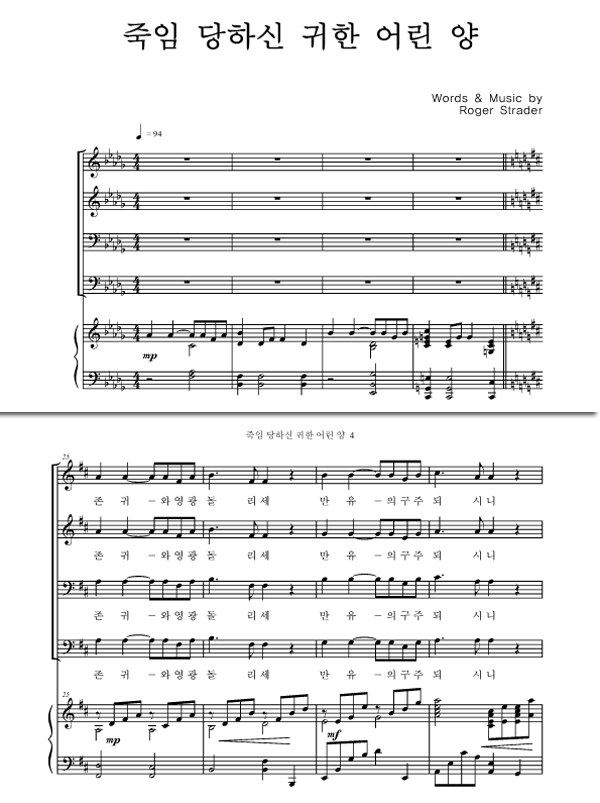 | 죽임 당하신 귀한 어린 양 | 성가 4부 + 피아노 반주 |