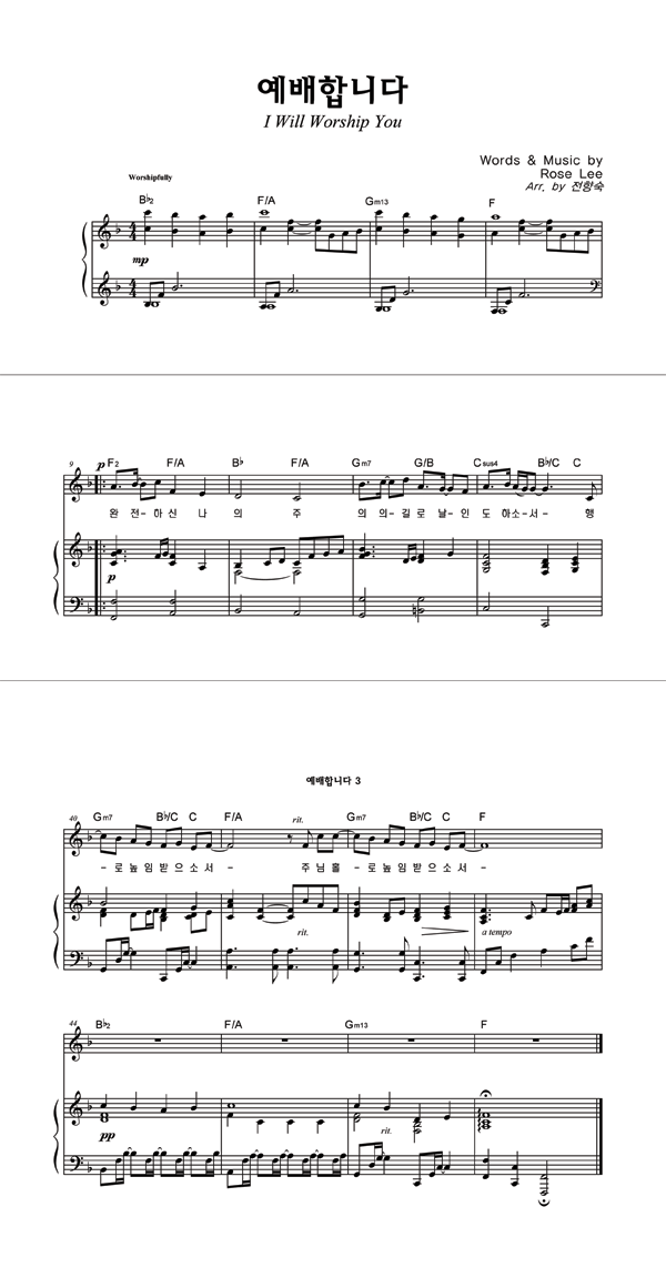 | 예배합니다 | 성가 4부 + 피아노 반주 |