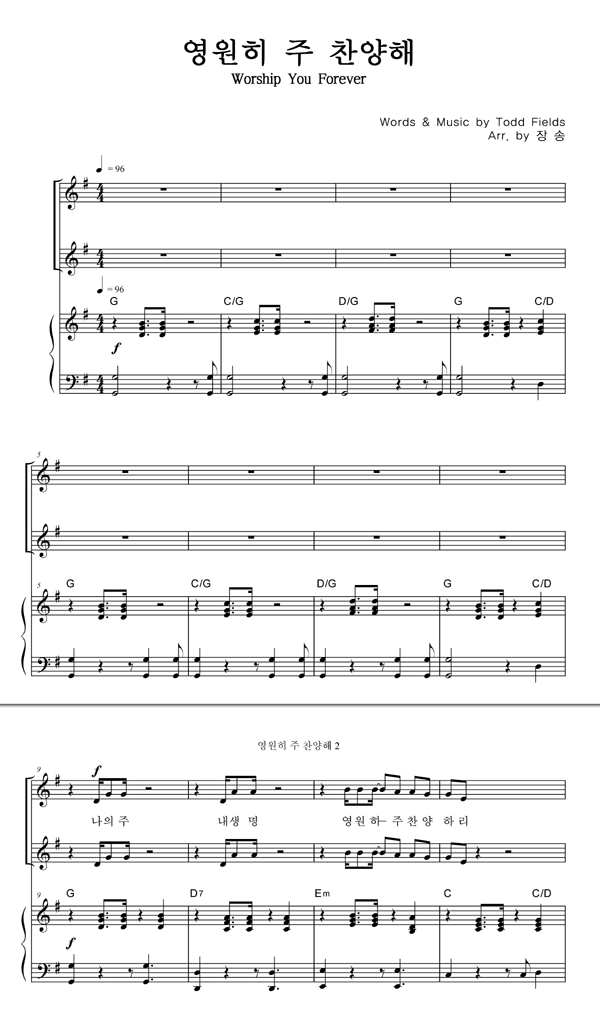 | 영원히 주 찬양하리 | 성가 2부 + 피아노 반주 |