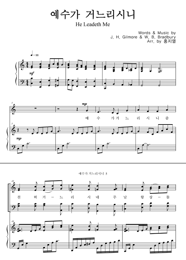 | 예수가 거느리시니 (찬송가 390장) | 성가 4부 + 피아노 반주 |