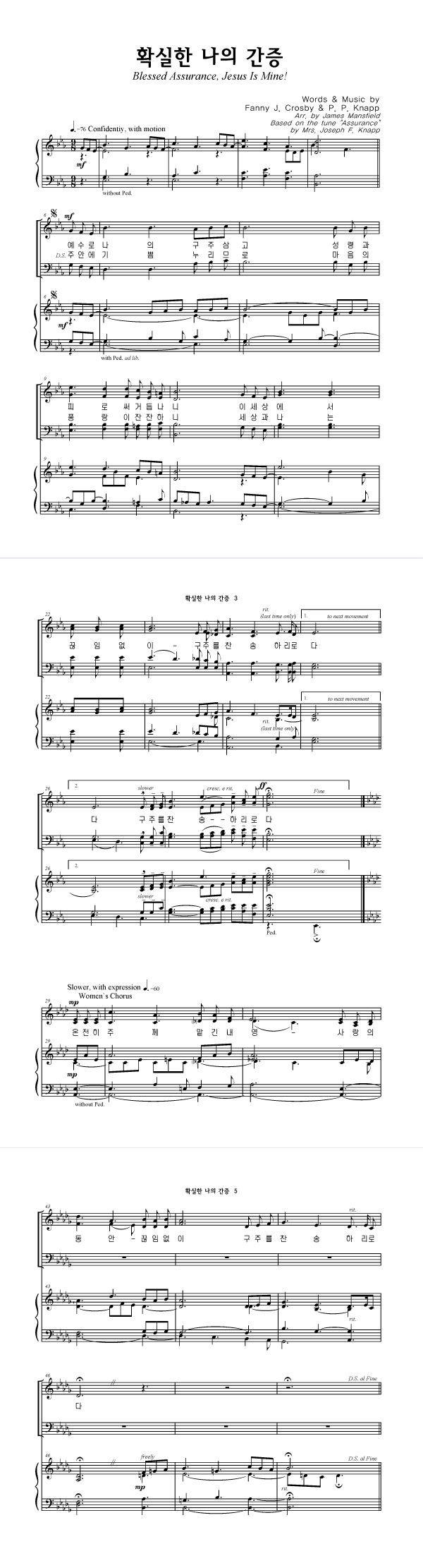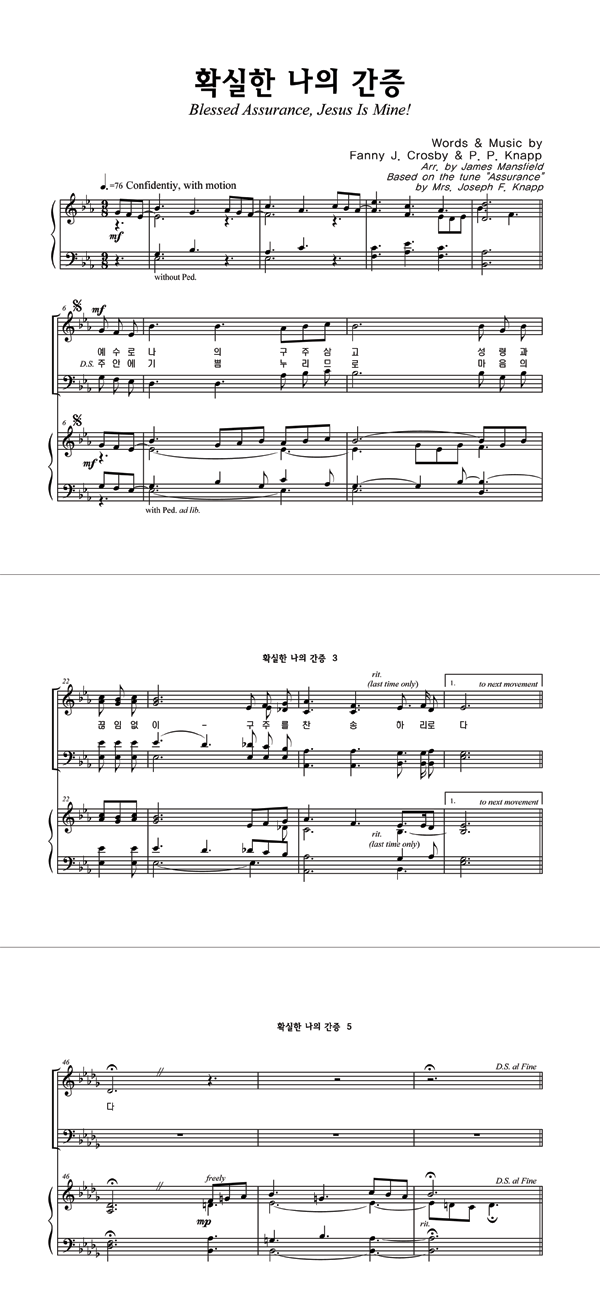 | 확실한 나의 간증 | 성가 4부 + 피아노 반주 |