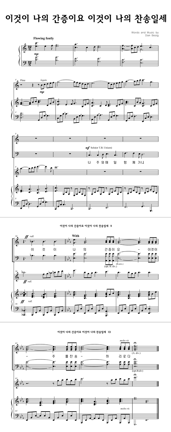 | 이것이 나의 간증이요 | 성가 4부 + 피아노 반주 |
