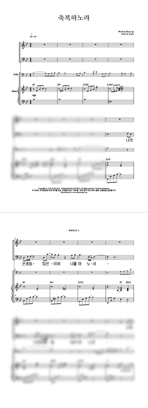 | 축복하노라 | 성가 2부 + 피아노 반주 |