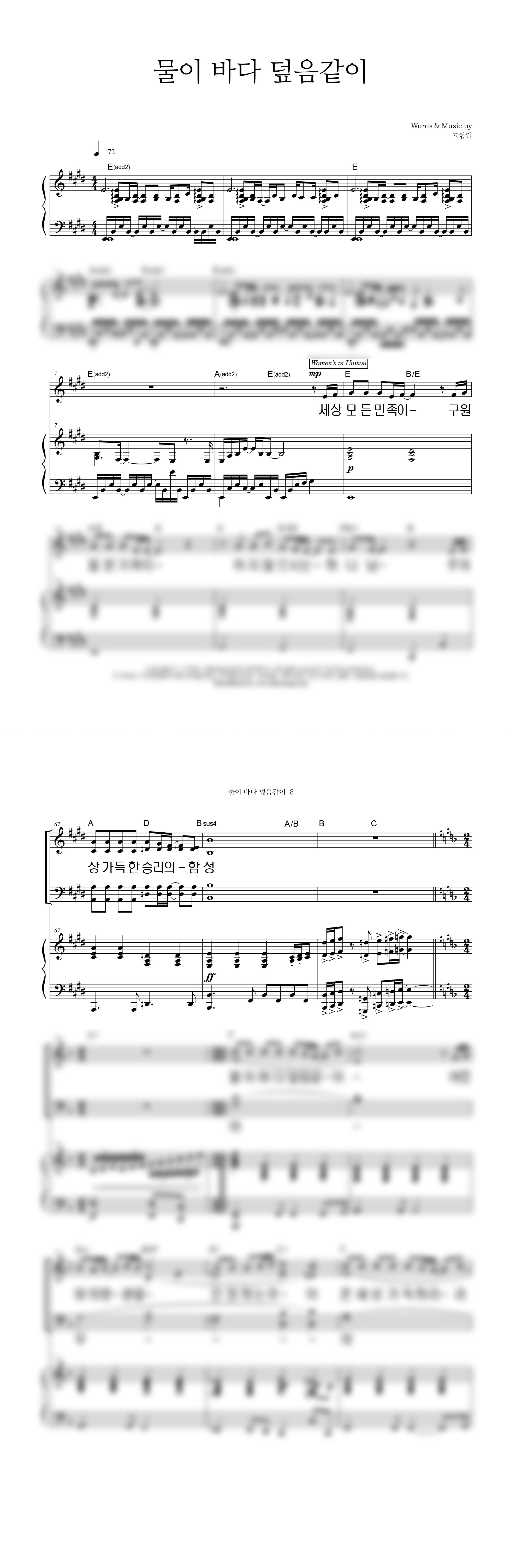 | 물이 바다 덮음같이 | 성가 2부 + 피아노 반주 |