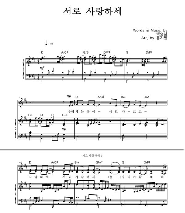 | 서로 사랑하세 | 성가 2부 + 피아노 반주 |