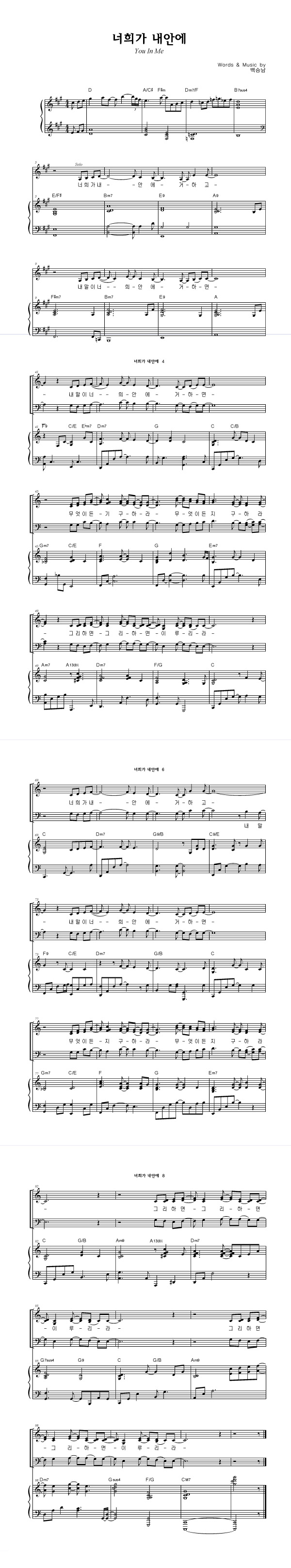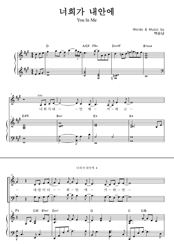 | 너희가 내안에 | 성가 4부 + 피아노 반주 |