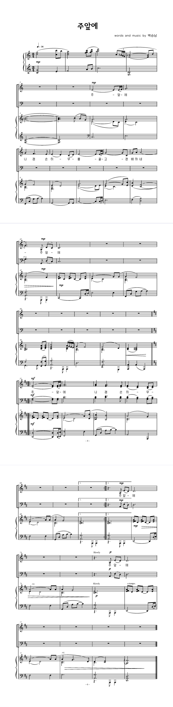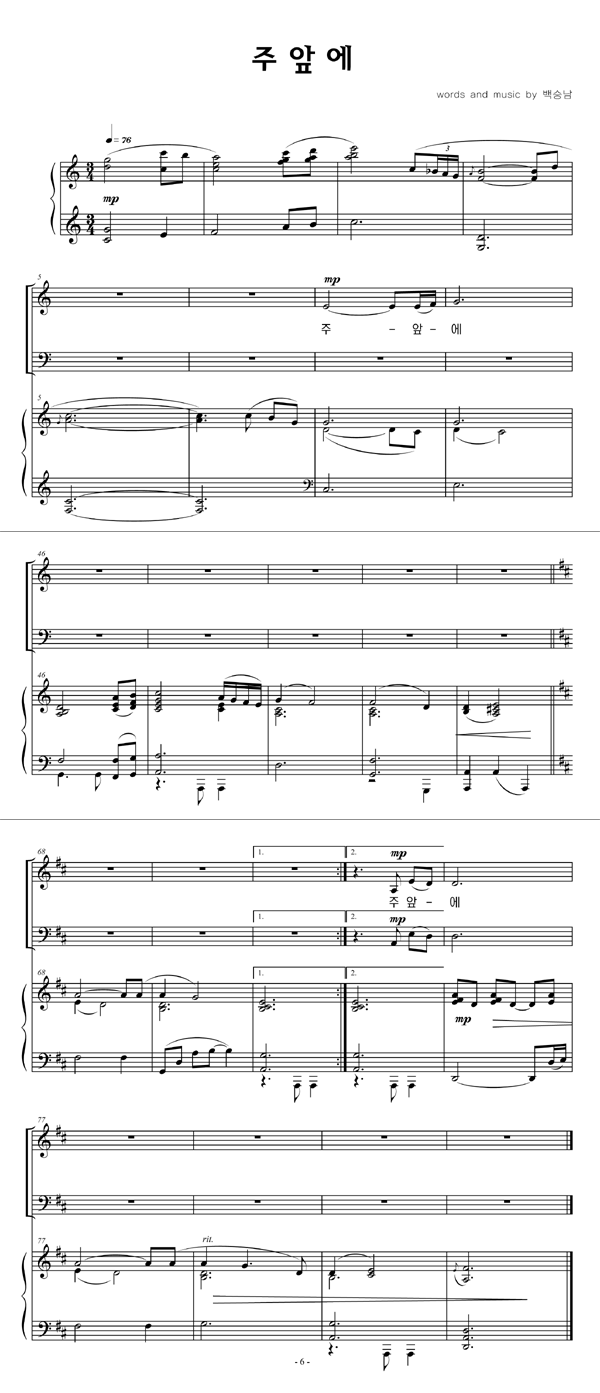 | 주 앞에 | 성가 4부 + 피아노 반주 |