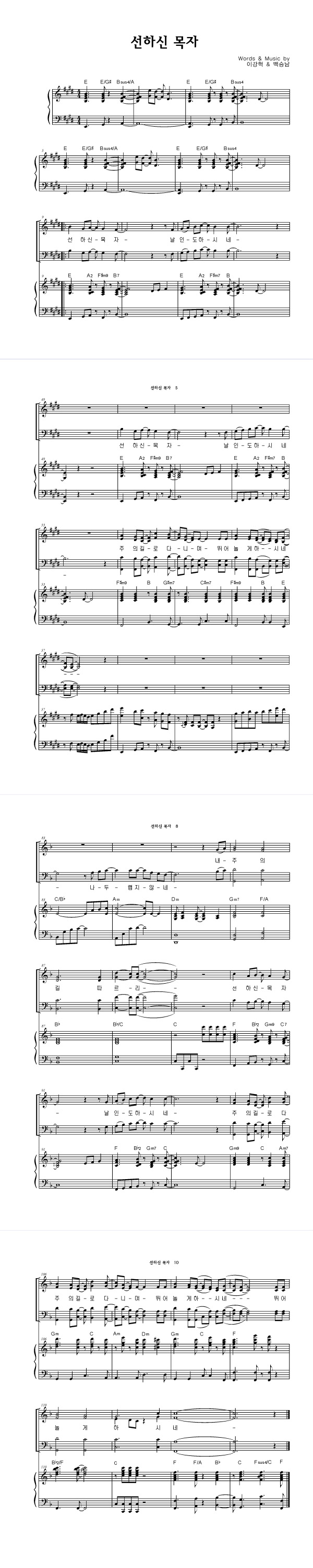 | 선하신 목자 | 성가 4부 + 피아노 반주 |