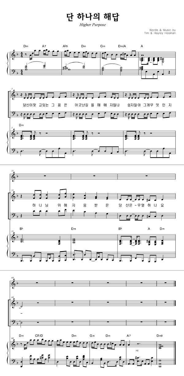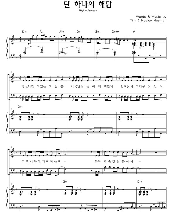 | 단 하나의 해답 | 성가 4부 + 피아노 반주 |
