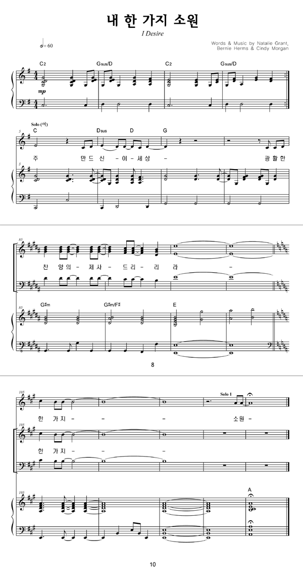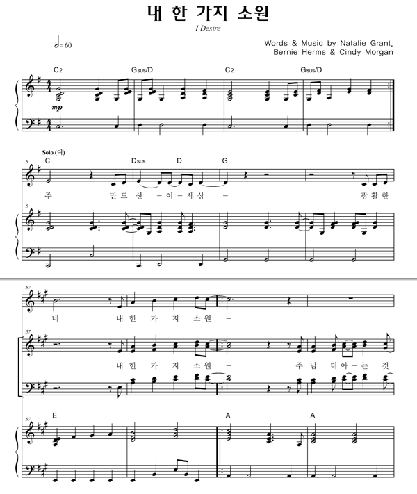 | 내 한가지 소원 | 성가 4부 + 피아노 반주 |