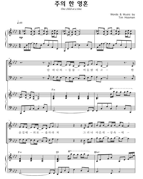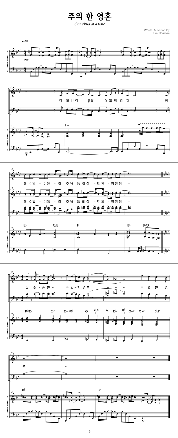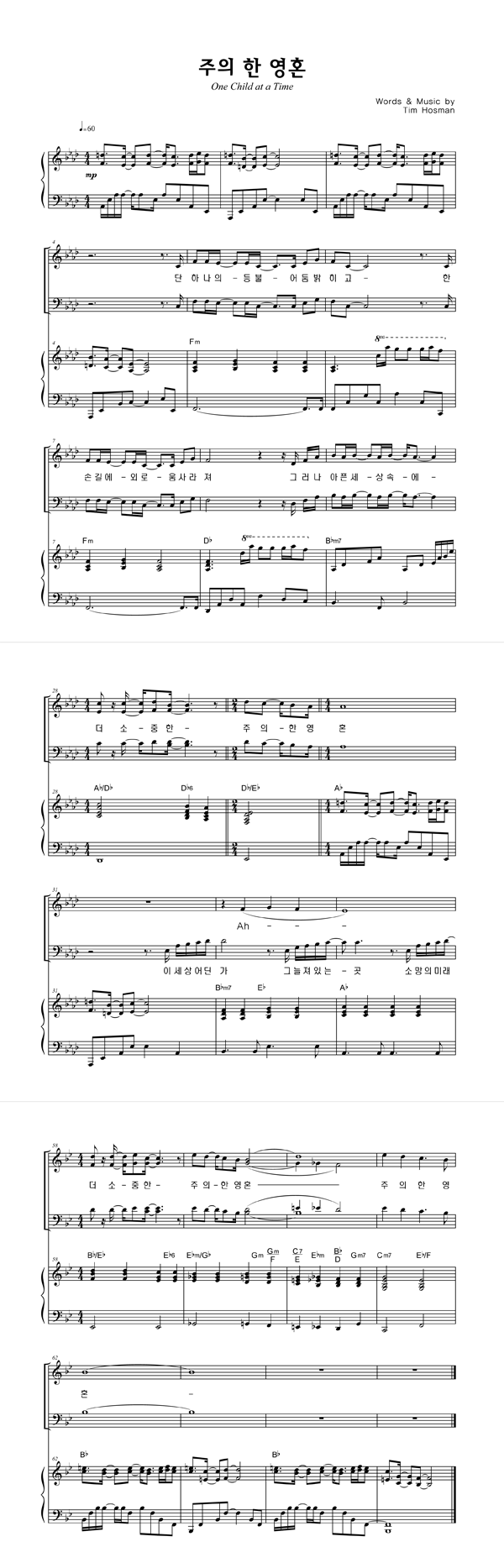 | 주의 한 영혼 | 성가 4부 + 피아노 반주 |