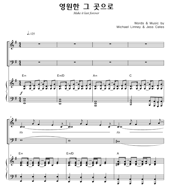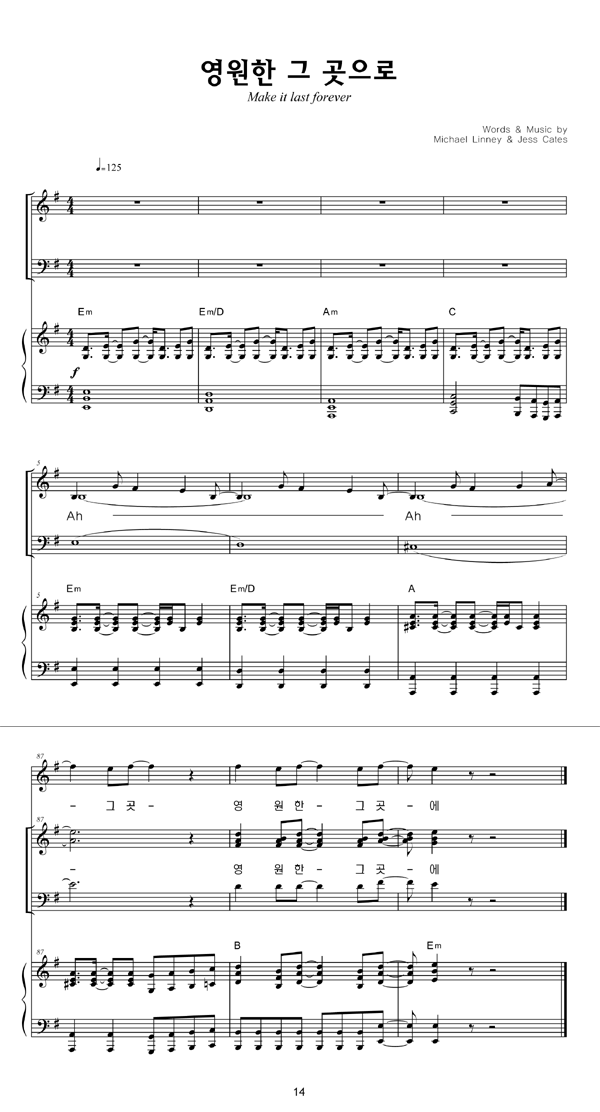 | 영원한 그 곳으로 | 성가 4부 + 피아노 반주 |