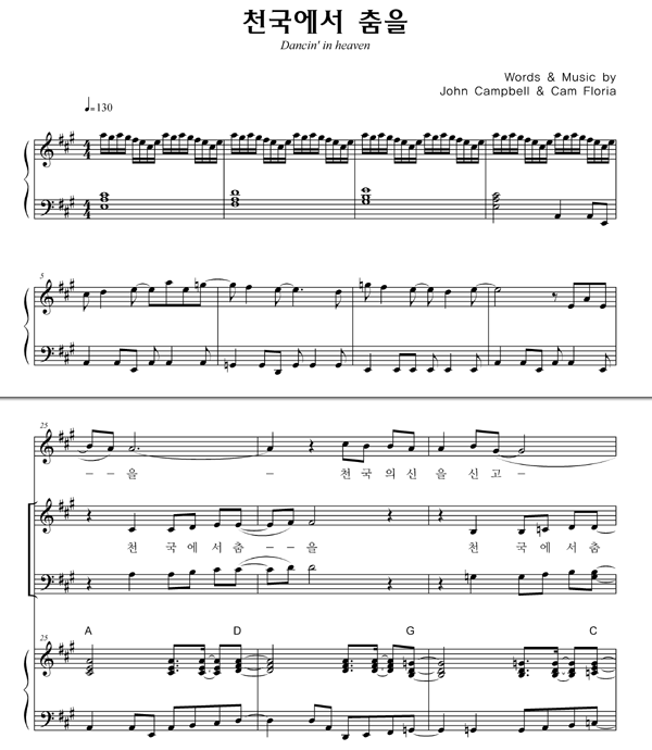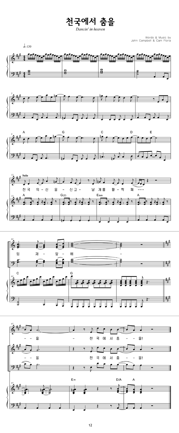 | 천국에서 춤을 | 성가 2부 + 피아노 반주 |