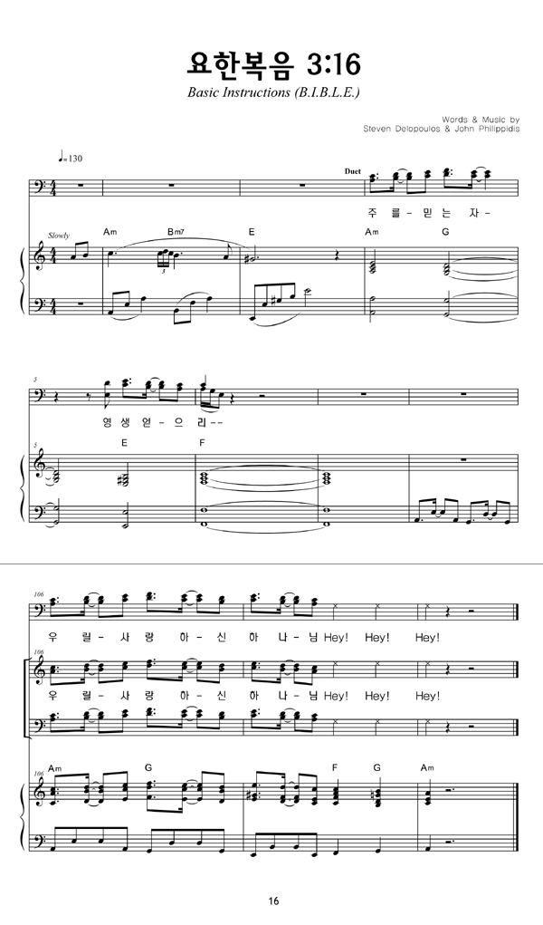 | 요한복음 3장 16절 | 성가 2부 + 피아노 반주 |