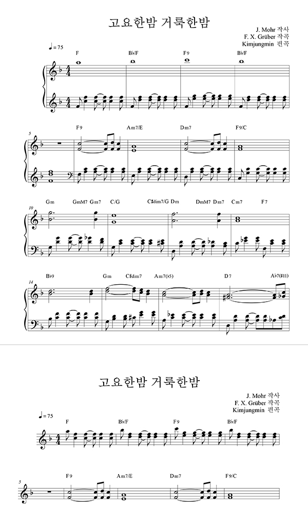 | 고요한 밤 거룩한 밤 (찬송가 109장) | 성가 2부 + 피아노 반주 |