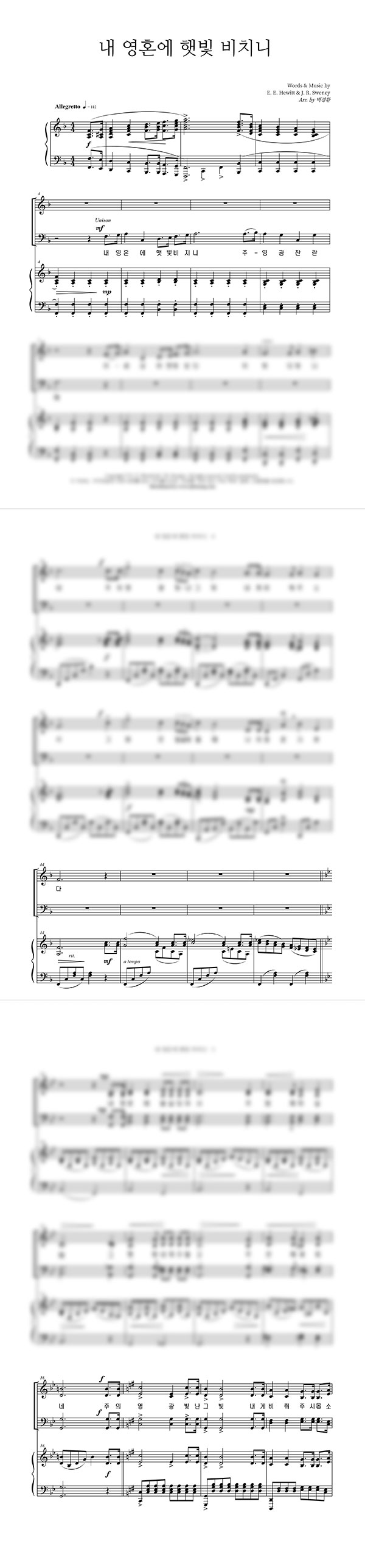 | 내 영혼에 햇빛 비치니 (찬송가 428장) | 성가 4부 + 피아노 반주 |