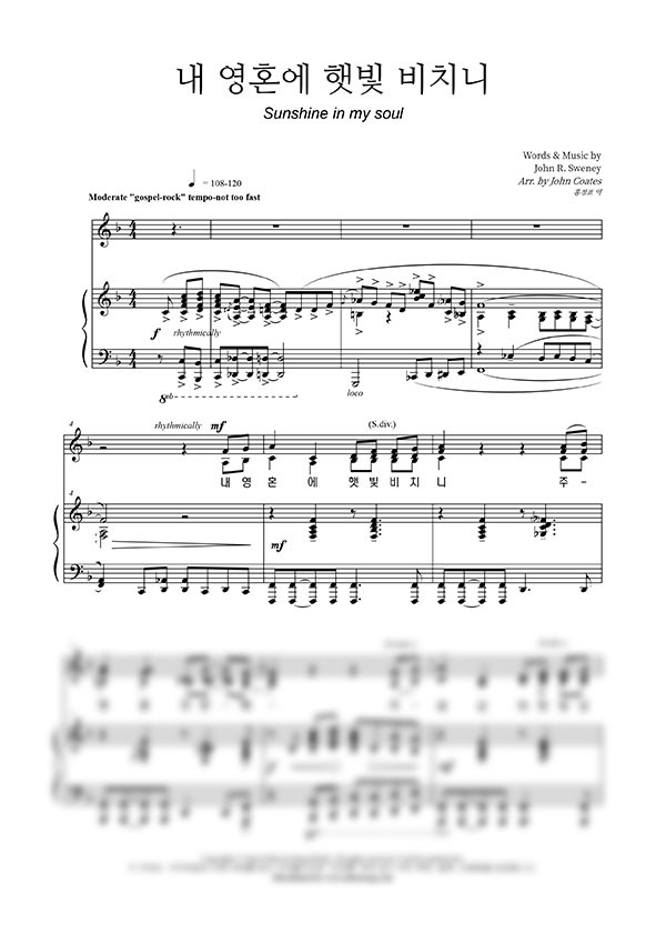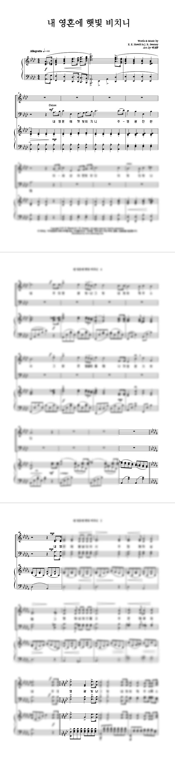 | 내 영혼에 햇빛 비치니 | 성가 4부 + 피아노 반주 |