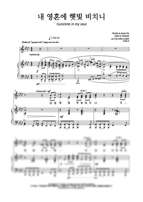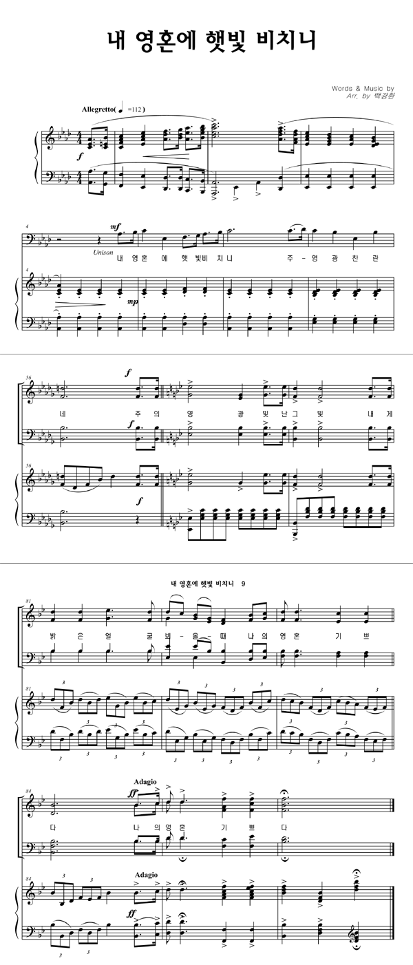 | 내 영혼에 햇빛 비치니 (찬송가 428장) | 성가 3부 + 피아노 반주 |