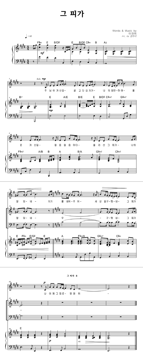 | 그 피가 | 성가 3부 + 피아노 반주 |