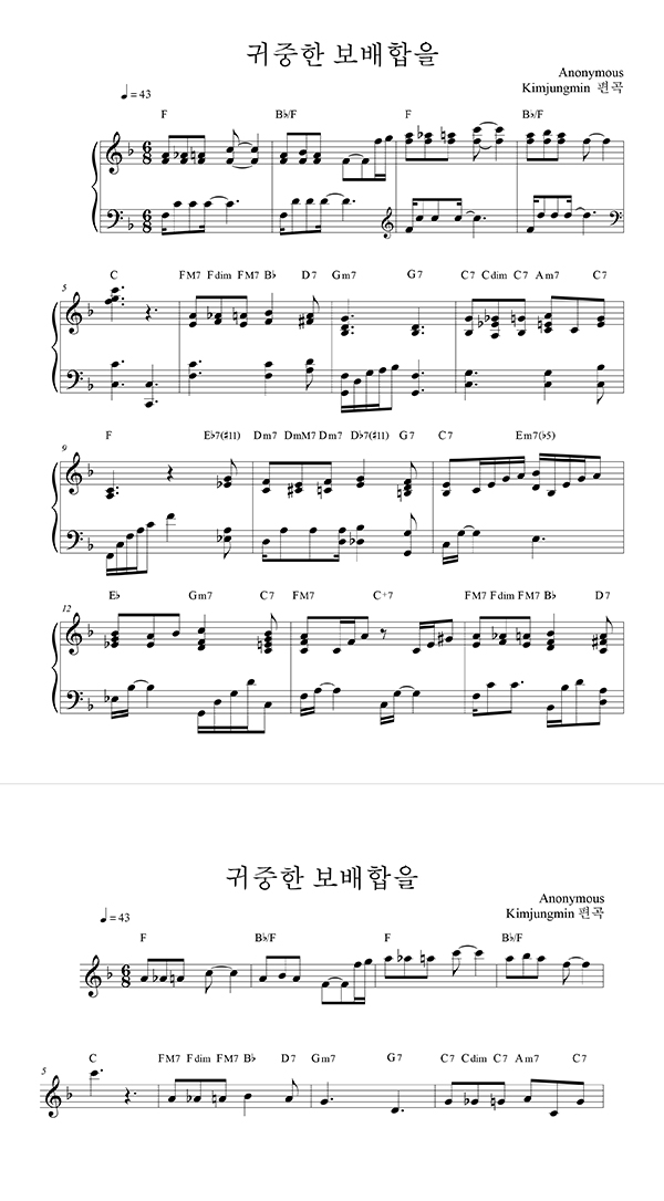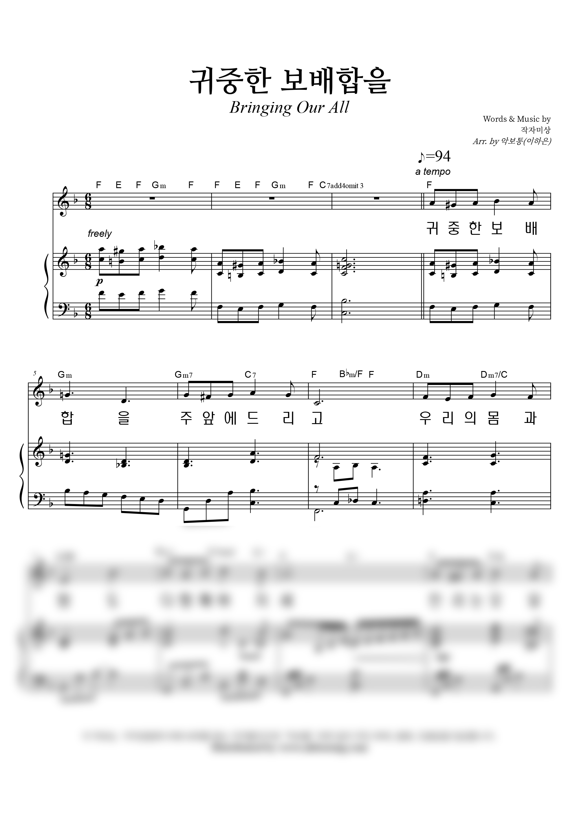 | 귀중한 보배합을 (찬송가 111장) | 성가 4부 + 피아노 반주 |