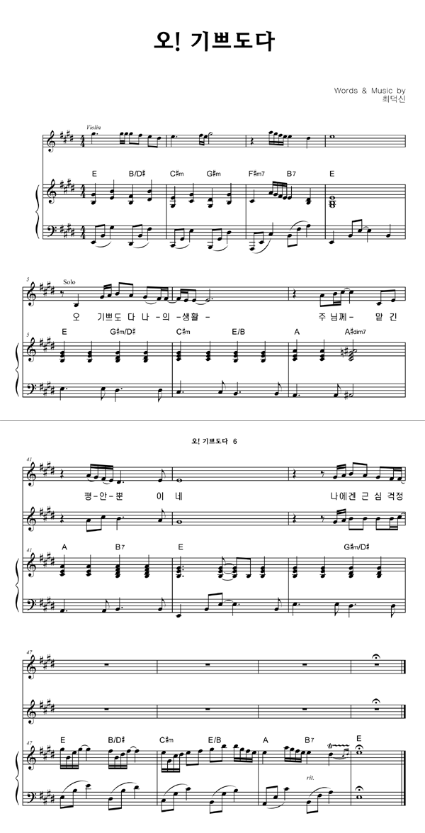 | 오 기쁘도다 | 성가 4부 + 피아노 반주 |