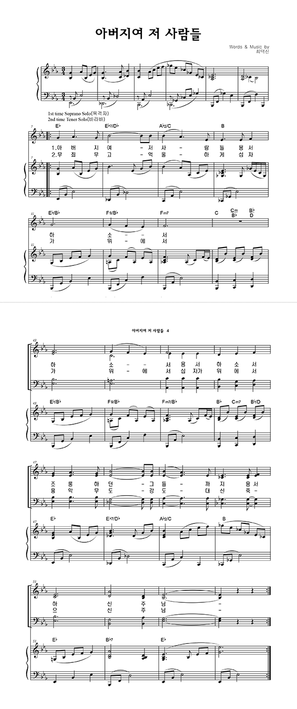 | 아버지여 저 사람들 | 성가 4부 + 피아노 반주 |