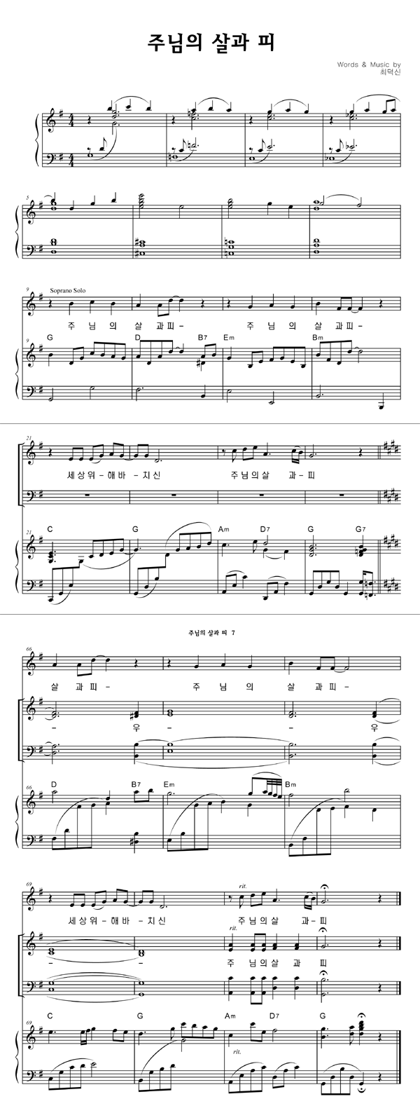 | 주님의 살과 피 | 성가 4부 + 피아노 반주 |