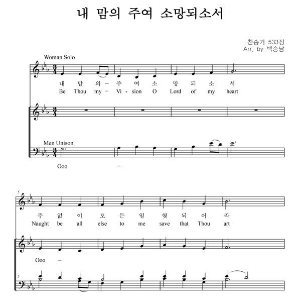 | 내 맘의 주여 내 소망 되소서 | 성가 2부 + 피아노 반주 |