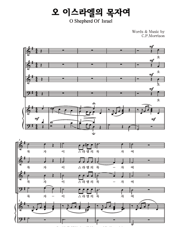 '오 이스라엘의 목자여' 의 다른 악보형식