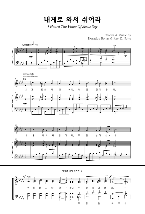 '내게로 와서 쉬어라' 의 다른 악보형식
