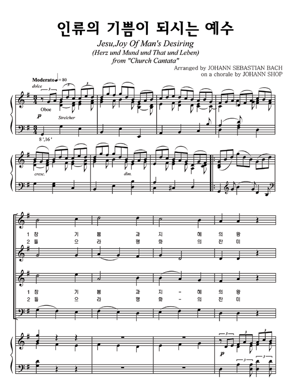 '인류의 기쁨이 되시는 예수' 의 다른 악보형식
