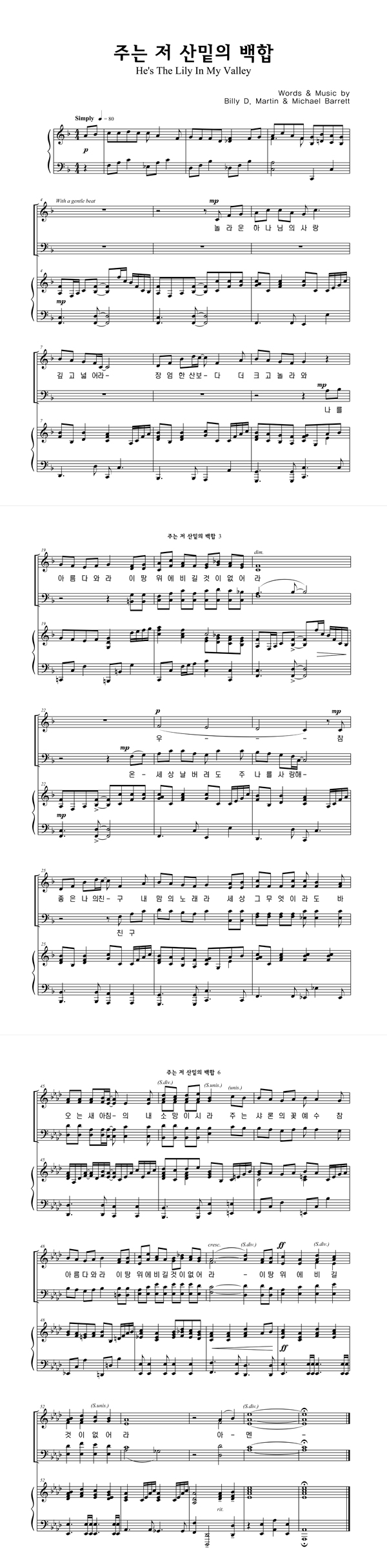 '주는 저 산밑의 백합' 의 다른 악보형식
