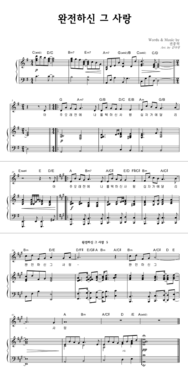 | 완전하신 그 사랑 | 성가 3부 + 피아노 반주 |