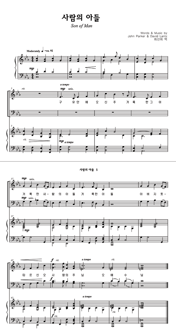 성가 4부 + 피아노 반주