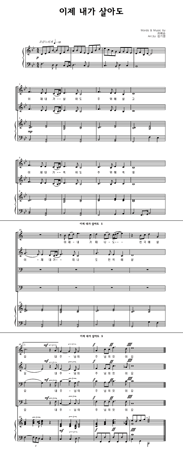 '사나 죽으나' 의 다른 악보형식