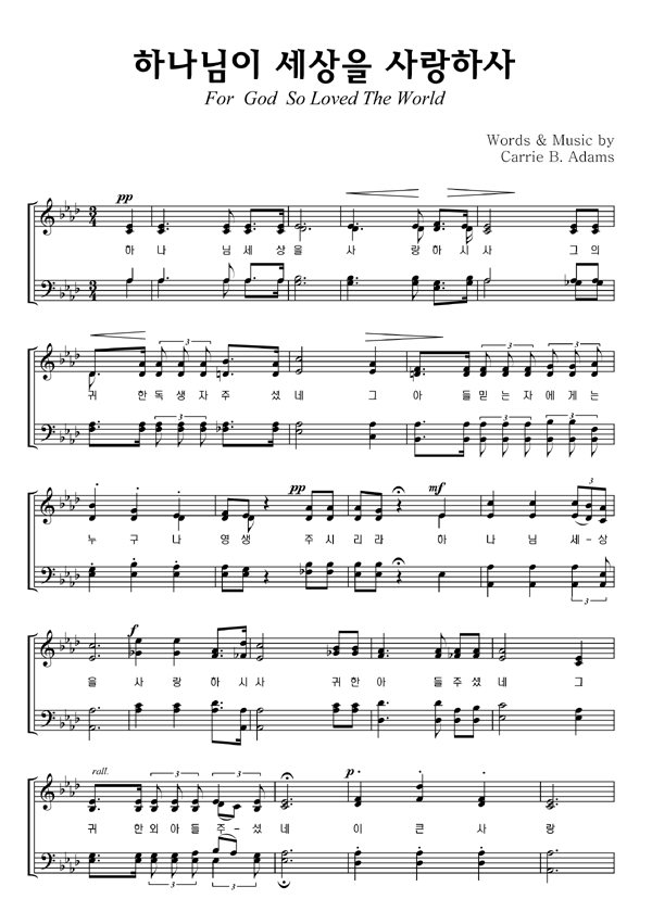 '하나님이 세상을 사랑하사' 의 다른 악보형식
