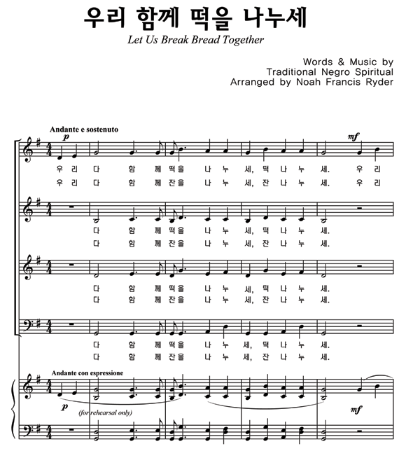'우리 함께 떡을 나누세' 의 다른 악보형식