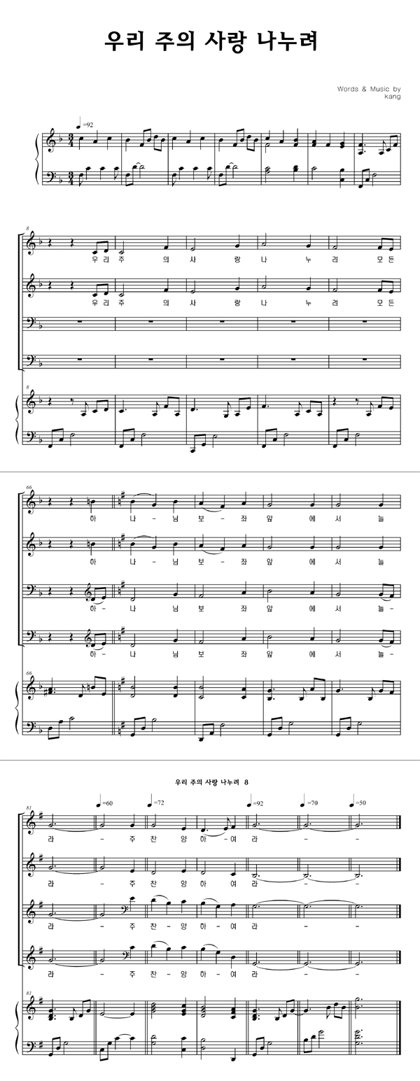 '우리 주의 사랑 나누려' 의 다른 악보형식