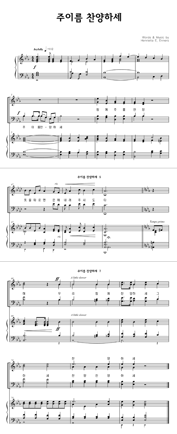 '주이름 찬양하세' 의 다른 악보형식
