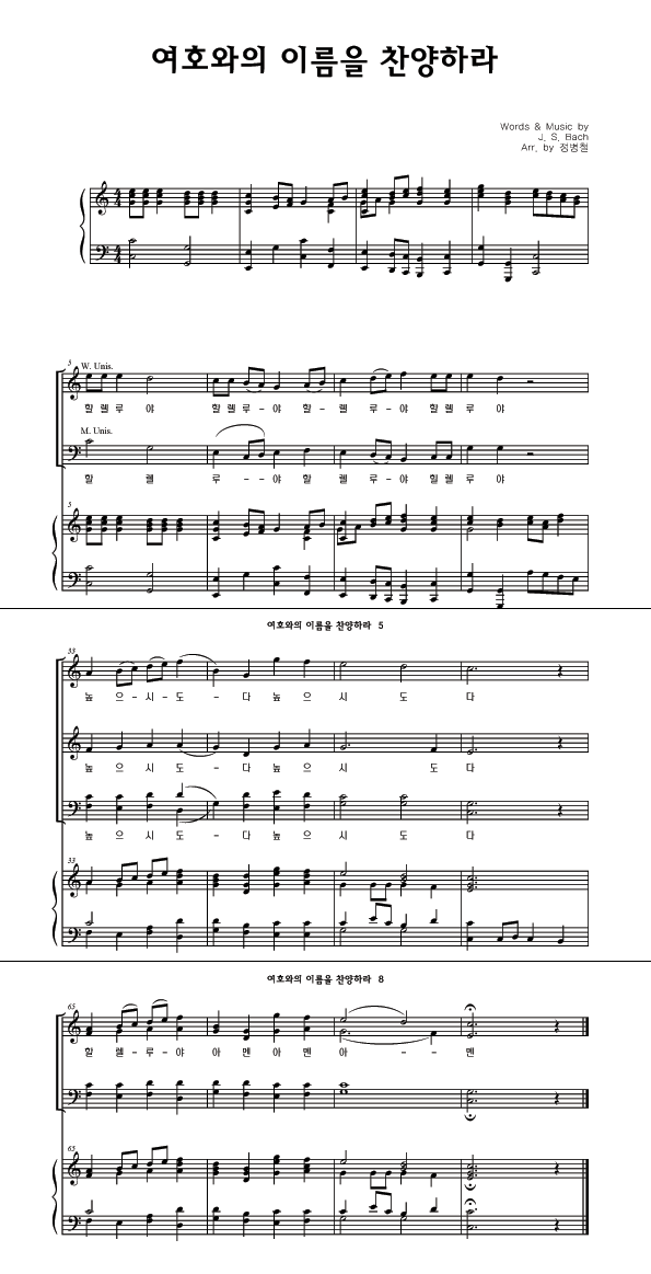 '여호와의 이름을 찬양하라' 의 다른 악보형식