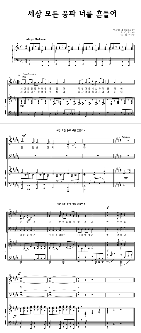 | 세상 모든 풍파 너를 흔들어 | 성가 4부 + 피아노 반주 |