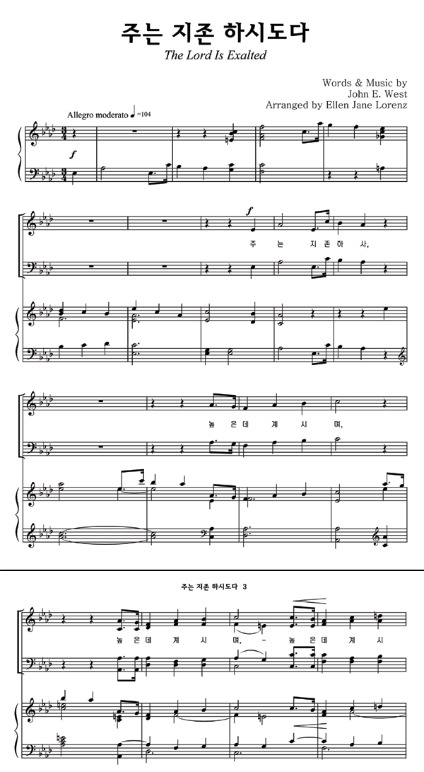 '주는 지존하시도다' 의 다른 악보형식