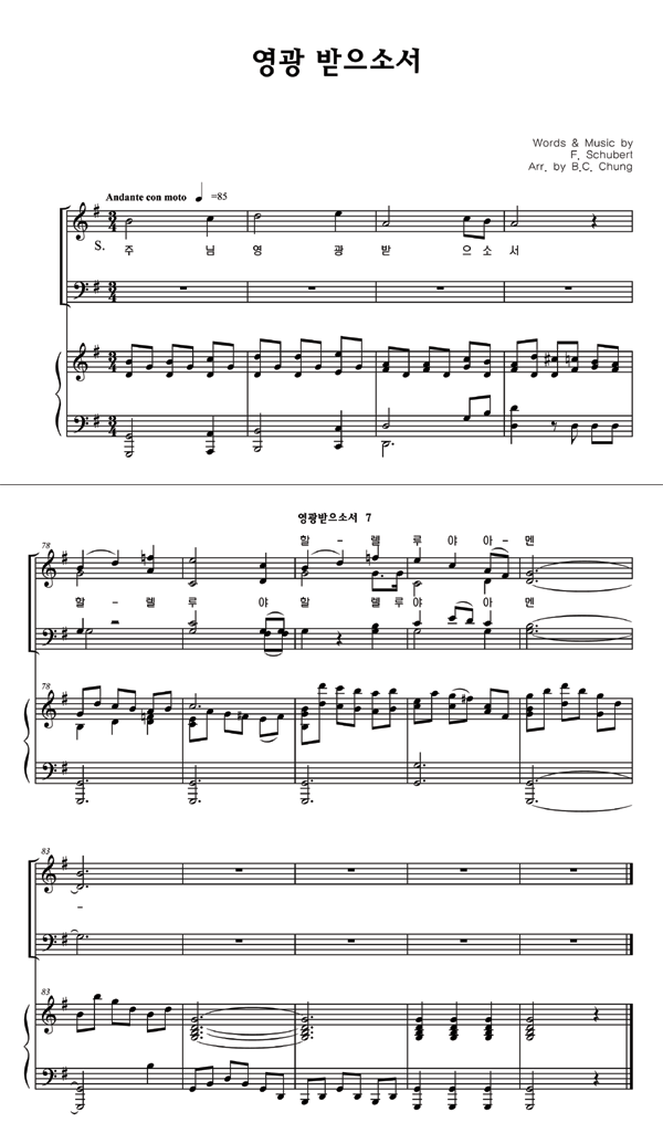 '영광 받으소서' 의 다른 악보형식
