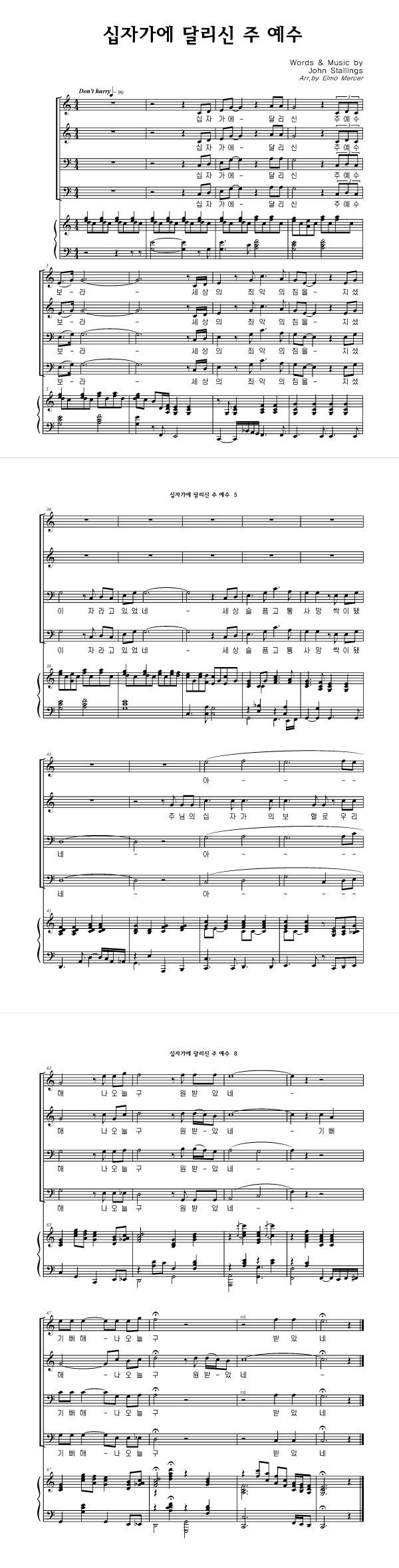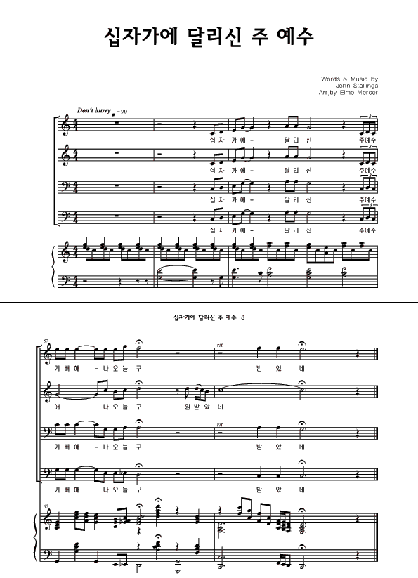 '십자가에 달리신 주 예수' 의 다른 악보형식