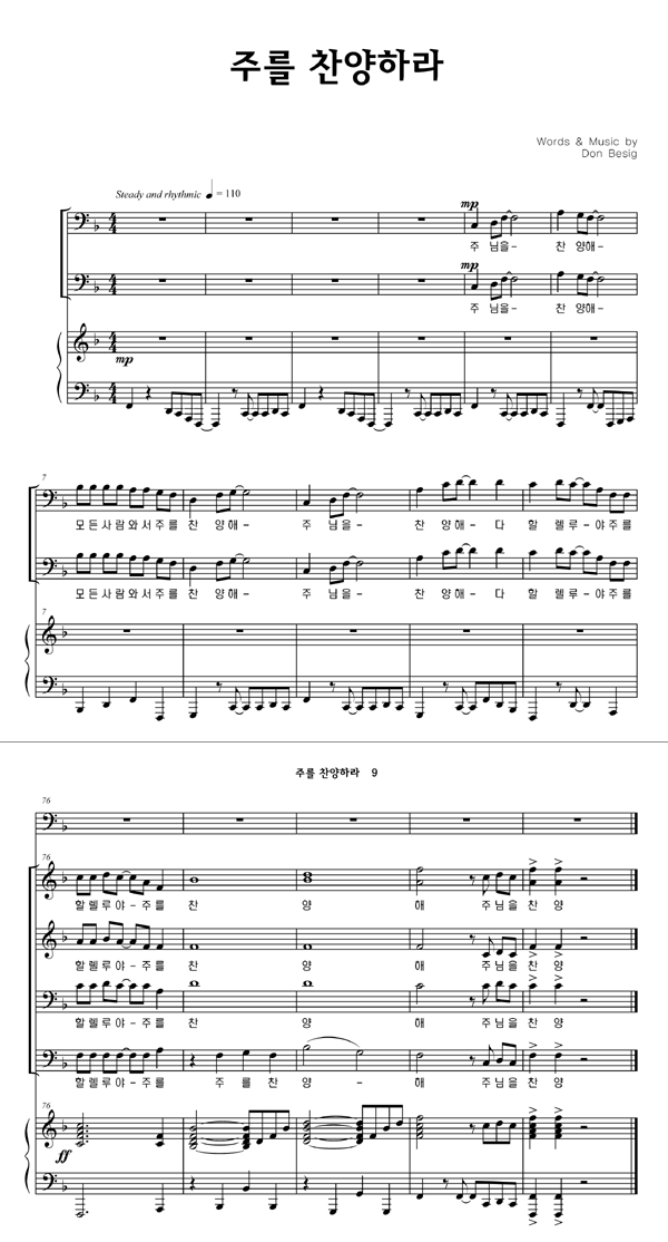 '주를 찬양하라' 의 다른 악보형식