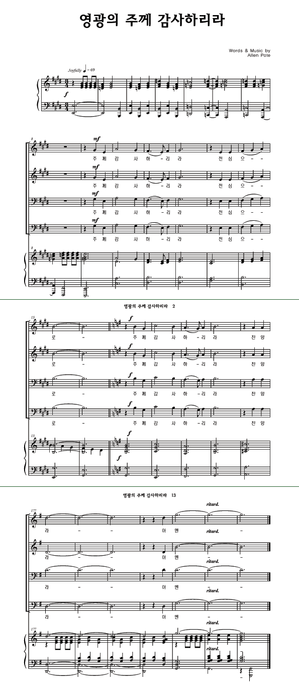 '영광의 주께 감사하리라' 의 다른 악보형식